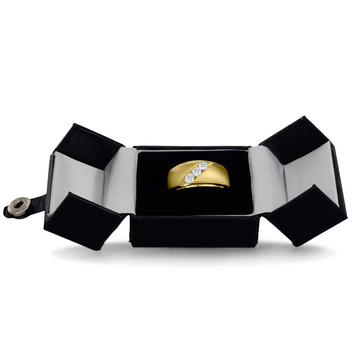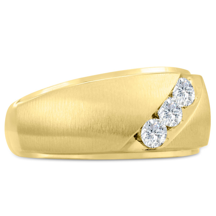 Men's diamond ring, great for a wedding band and everyday wear. This ring features 3 diamonds at 0.51ct total diamond weight. Diamond color is J-K and diamond clarity is I2. Ring is 11.02mm wide. This ring is crafted in solid 10 karat yellow gold and is available in ring sizes 7-13.5