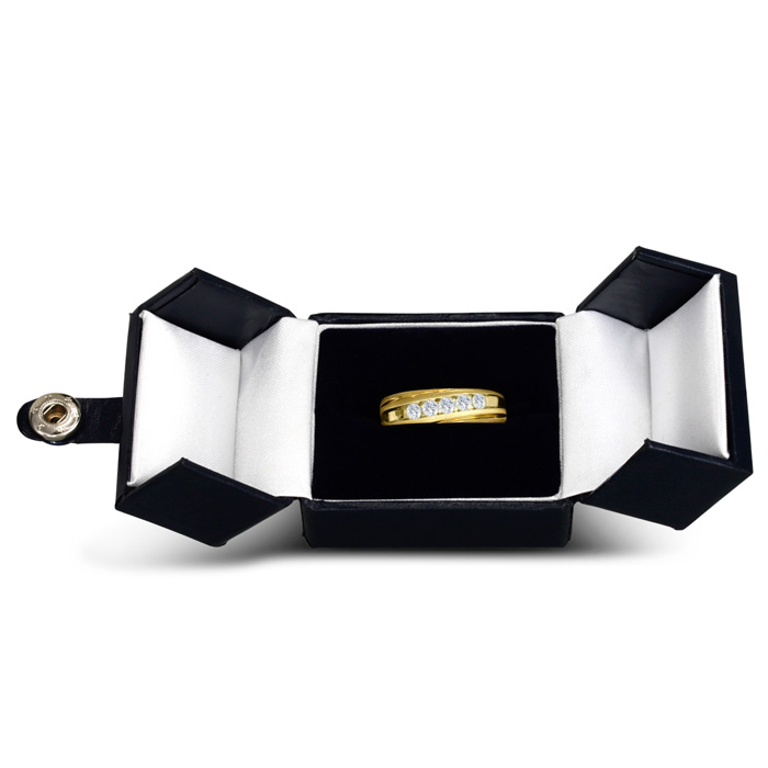 Men's diamond ring, great for a wedding band and everyday wear. This ring features 5 diamonds at 0.50ct total diamond weight. Diamond color is J-K and diamond clarity is I2. Ring is 6.67mm wide. This ring is crafted in solid 10 karat yellow gold and is available in ring sizes 7-13.5