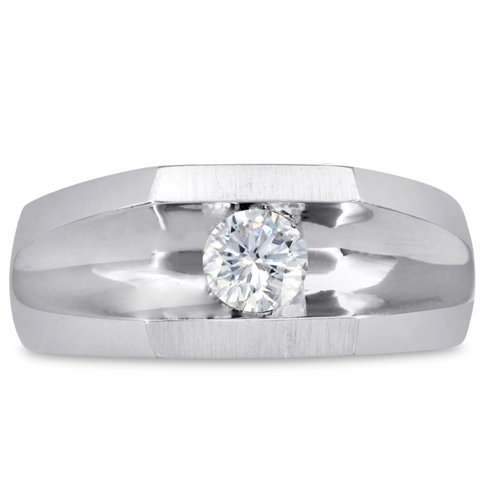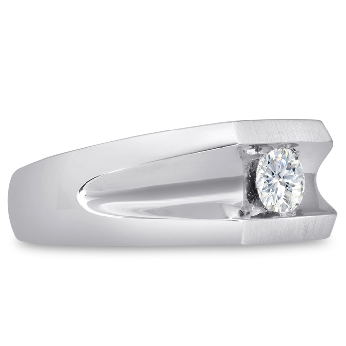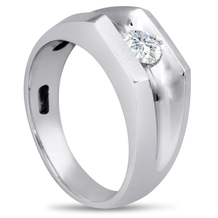 Men's diamond ring, great for a wedding band and everyday wear. This ring features 1 diamond at 0.50ct total diamond weight. Diamond color is I-J and diamond clarity is I1-I2. Ring is 9.44mm wide. This ring is crafted in solid 14 karat white gold and is available in ring sizes 7-13.5