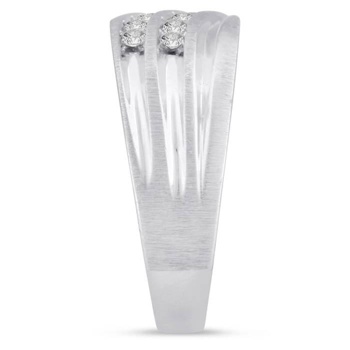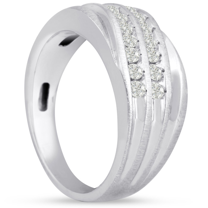 Men's diamond ring, great for a wedding band and everyday wear. This ring features 14 diamonds at 0.49ct total diamond weight. Diamond color is I-J and diamond clarity is I1-I2. Ring is 10.13mm wide. This ring is crafted in solid 14 karat white gold and is available in ring sizes 7-13.5