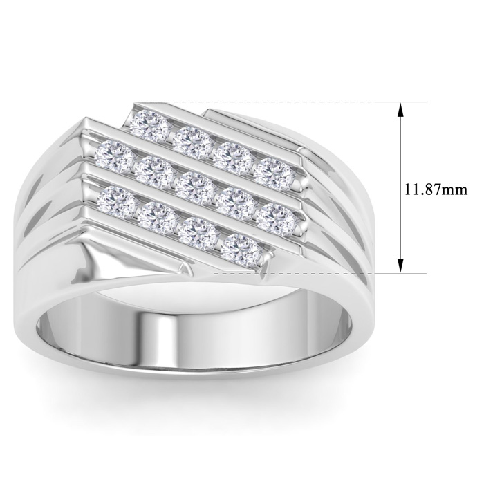 Men's diamond ring, great for a wedding band and everyday wear. This ring features 13 diamonds at 0.49ct total diamond weight. Diamond color is I-J and diamond clarity is I1-I2. Ring is 11.87mm wide. This ring is crafted in solid 14 karat white gold and is available in ring sizes 7-13.5