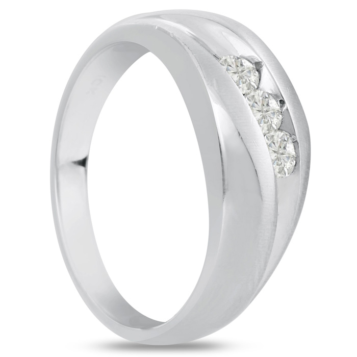 Men's diamond ring, great for a wedding band and everyday wear. This ring features 3 diamonds at 0.33ct total diamond weight. Diamond color is I-J and diamond clarity is I1-I2. Ring is 7.95mm wide. This ring is crafted in solid 14 karat white gold and is available in ring sizes 7-13.5