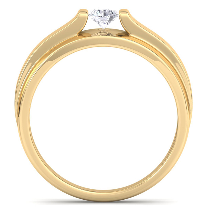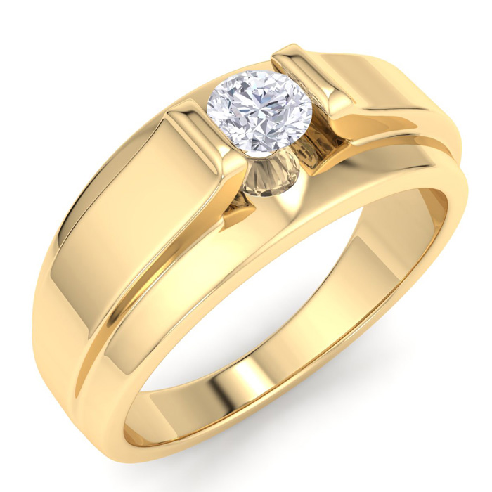 Men's diamond ring, great for a wedding band and everyday wear. This ring features 1 diamond at 0.33ct total diamond weight. Diamond color is I-J and diamond clarity is I1-I2. Ring is 9.73mm wide. This ring is crafted in solid 14 karat yellow gold and is available in ring sizes 7-13.5