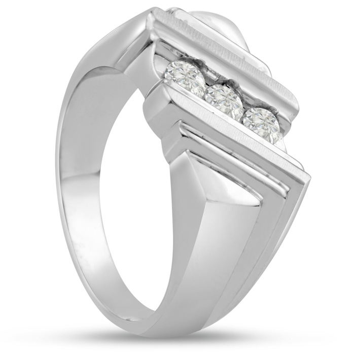 Men's diamond ring, great for a wedding band and everyday wear. This ring features 3 diamonds at 0.24ct total diamond weight. Diamond color is I-J and diamond clarity is I1-I2. Ring is 10.19mm wide. This ring is crafted in solid 14 karat white gold and is available in ring sizes 7-13.5