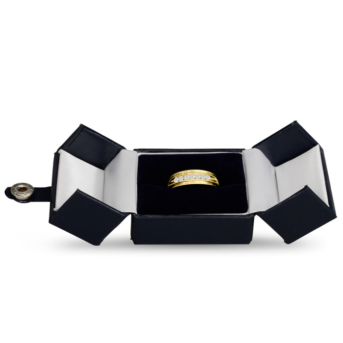 Men's diamond ring, great for a wedding band and everyday wear. This ring features 7 diamonds at 0.25ct total diamond weight. Diamond color is I-J and diamond clarity is I1-I2. Ring is 6.47mm wide. This ring is crafted in solid 14 karat yellow gold and is available in ring sizes 7-13.5