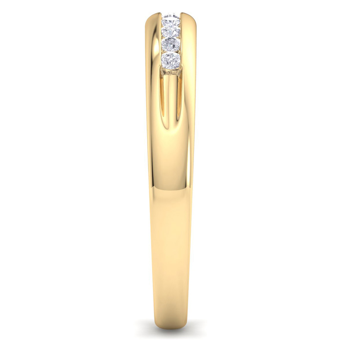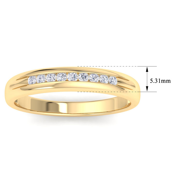 Men's diamond ring, great for a wedding band and everyday wear. This ring features 9 diamonds at 0.20ct total diamond weight. Diamond color is I-J and diamond clarity is I1-I2. Ring is 5.31mm wide. This ring is crafted in solid 14 karat yellow gold and is available in ring sizes 7-13.5