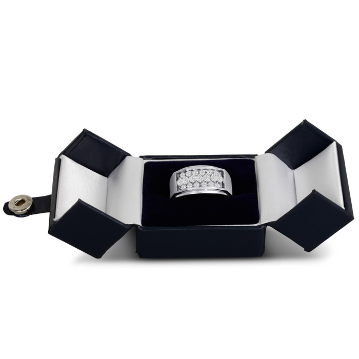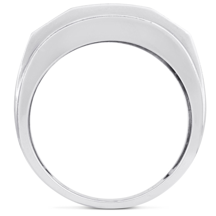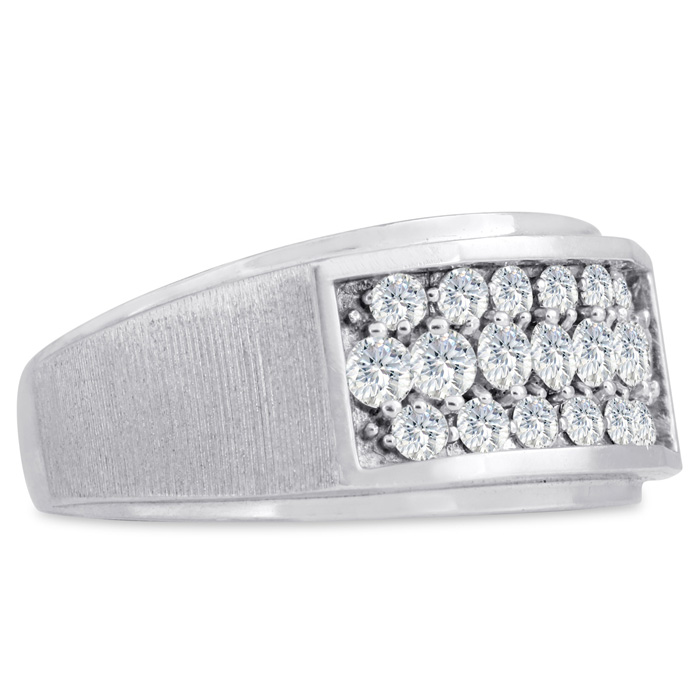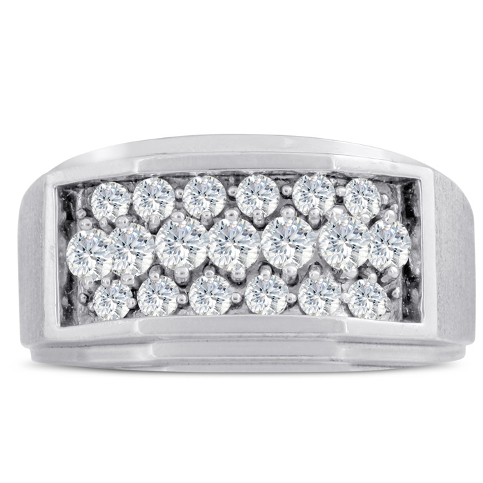 Men's diamond ring, great for a wedding band and everyday wear. This ring features 19 diamonds at 0.95ct total diamond weight. Diamond color is J-K and diamond clarity is I2. Ring is 11.73mm wide. This ring is crafted in solid 10 karat white gold and is available in ring sizes 7-13.5