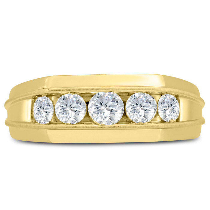 Men's diamond ring, great for a wedding band and everyday wear. This ring features 5 diamonds at 1.00ct total diamond weight. Diamond color is J-K and diamond clarity is I2. Ring is 8.33mm wide. This ring is crafted in solid 10 karat yellow gold and is available in ring sizes 7-13.5