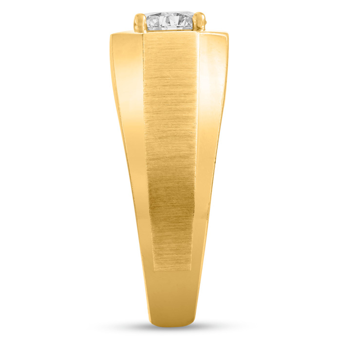 Men's diamond ring, great for a wedding band and everyday wear. This ring features 1 diamond at 1.00ct total diamond weight. Diamond color is J-K and diamond clarity is I2. Ring is 10.47mm wide. This ring is crafted in solid 10 karat yellow gold and is available in ring sizes 7-13.5