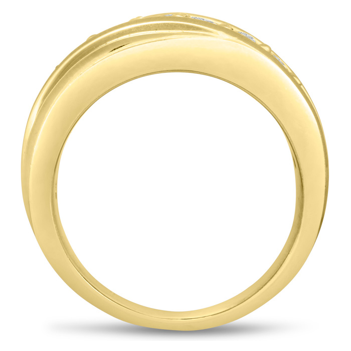 Men's diamond ring, great for a wedding band and everyday wear. This ring features 7 diamonds at 0.98ct total diamond weight. Diamond color is J-K and diamond clarity is I2. Ring is 9.88mm wide. This ring is crafted in solid 10 karat yellow gold and is available in ring sizes 7-13.5
