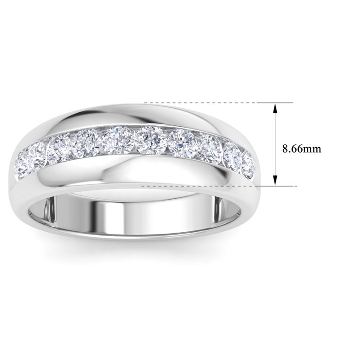 Men's diamond ring, great for a wedding band and everyday wear. This ring features 10 diamonds at 1.0ct total diamond weight. Diamond color is G-H and diamond clarity is VS. Ring is 8.66mm wide. This ring is crafted in solid 14 karat white gold and is available in ring sizes 7-13.5
