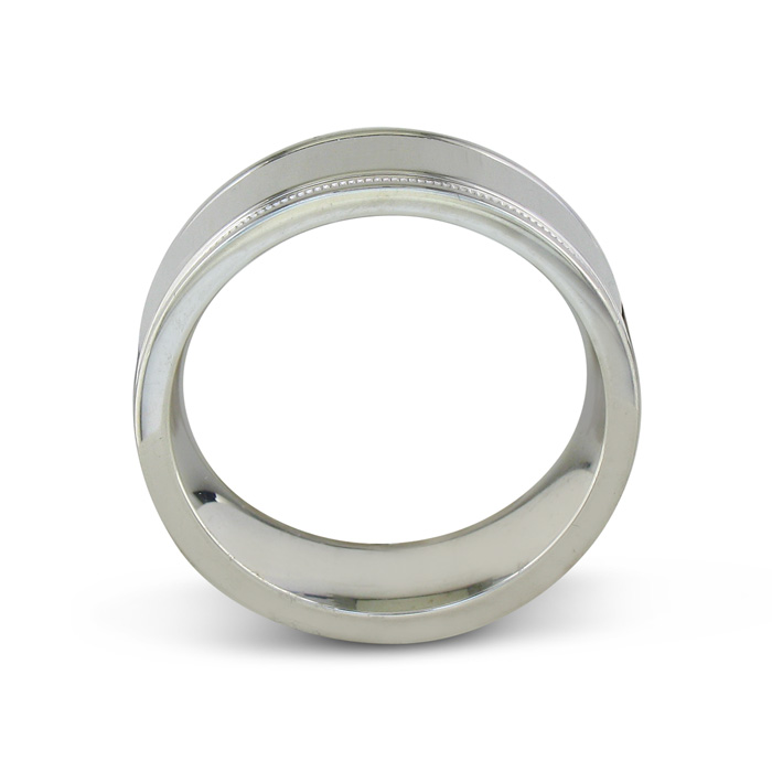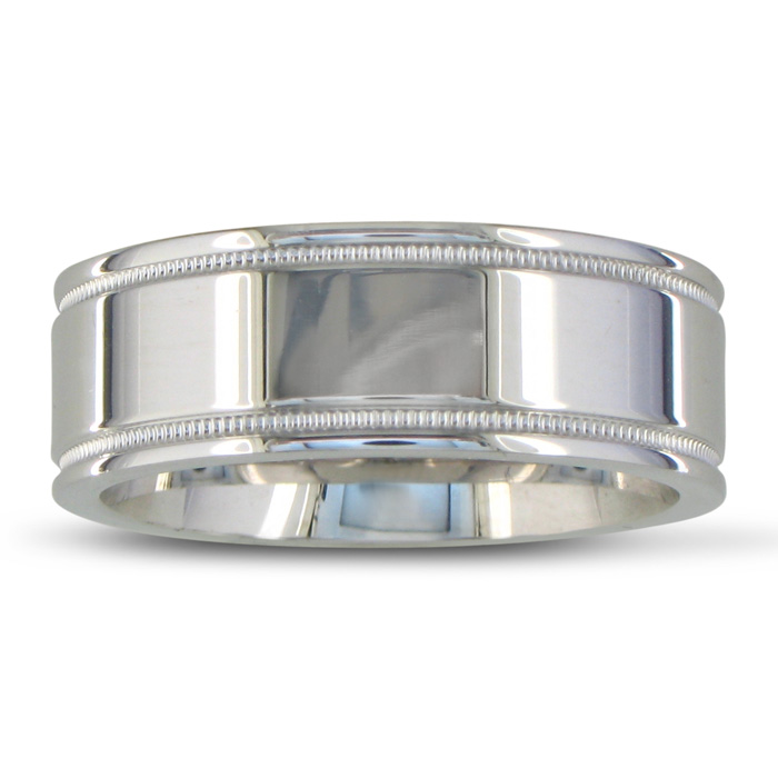 Mens and Womens High Polish and Milgrain Silver Wide 8mm Wedding Band