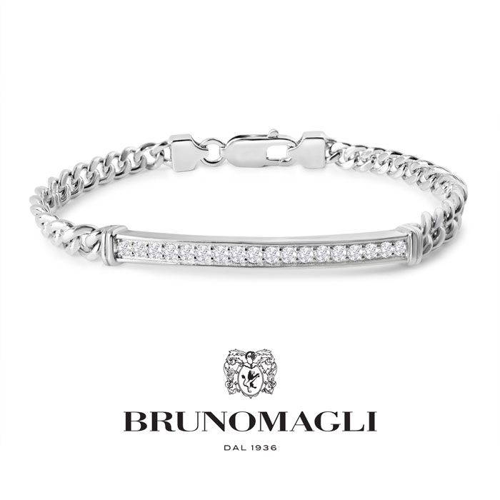 Bruno Magli men's jewelry blends refined Italian craftsmanship with contemporary style, creating timeless accessories for the modern man. Each piece is expertly designed using high-quality materials, adding a touch of sophistication to any outfit. This Bruno Magli mens lab grown diamond bracelet features 18 round shape lab grown diamonds in G-H color, VS clarity totaling 1/2 carat. This bracelet is in sterling silver and has a fancy curb chain with a lobster-claw clasp. This bracelet is 8 inches long. Bruno Magli jewelry utilizes sustainable luxury by using recycled precious metals, eco-friendly lab-grown diamonds, and iconic branding for a refined touch.