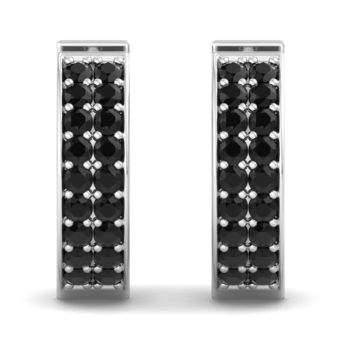 1/2 Carat Black Diamond Mens Hoop Earrings In 14 Karat White Gold