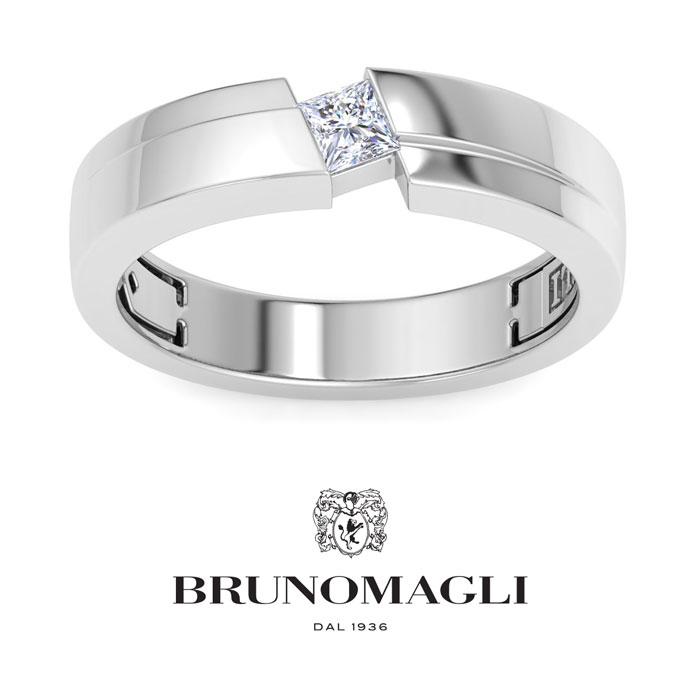 Bruno Magli men's jewelry blends refined Italian craftsmanship with contemporary style, creating timeless accessories for the modern man. Each piece is expertly designed using high-quality materials, adding a touch of sophistication to any outfit. This Bruno Magli mens lab grown diamond ring features a 1/4 carat princess cut center lab grown diamond in G-H color, VS clarity. This ring is in sterling silver. Bruno Magli jewelry utilizes sustainable luxury by using recycled precious metals, eco-friendly lab-grown diamonds, and iconic branding for a refined touch.