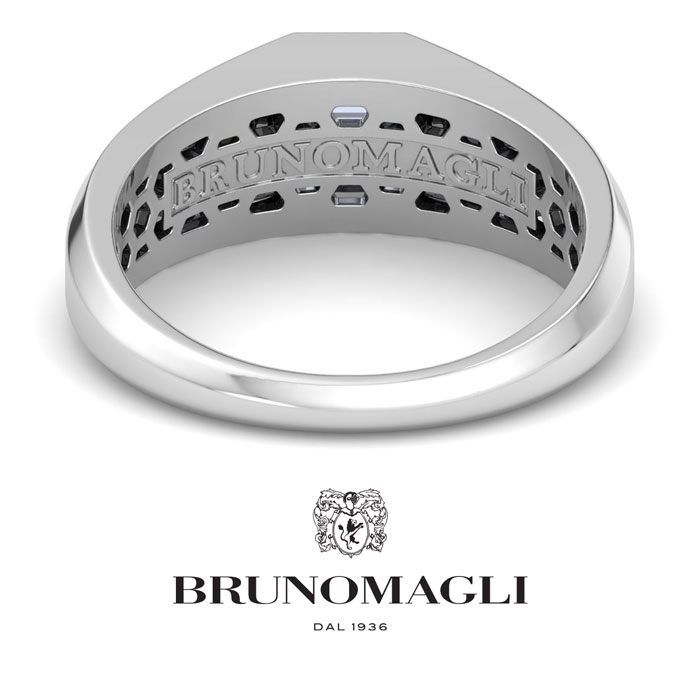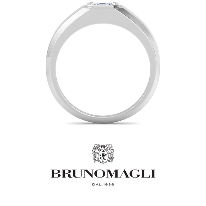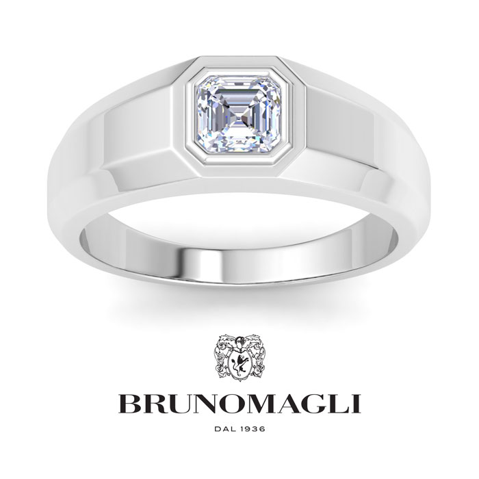 Bruno Magli men's jewelry blends refined Italian craftsmanship with contemporary style, creating timeless accessories for the modern man. Each piece is expertly designed using high-quality materials, adding a touch of sophistication to any outfit. This Bruno Magli mens lab grown diamond ring features a 1 carat asscher cut center lab grown diamond in G-H color, VS clarity. This ring is in sterling silver. Bruno Magli jewelry utilizes sustainable luxury by using recycled precious metals, eco-friendly lab-grown diamonds, and iconic branding for a refined touch.