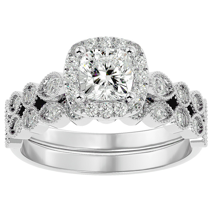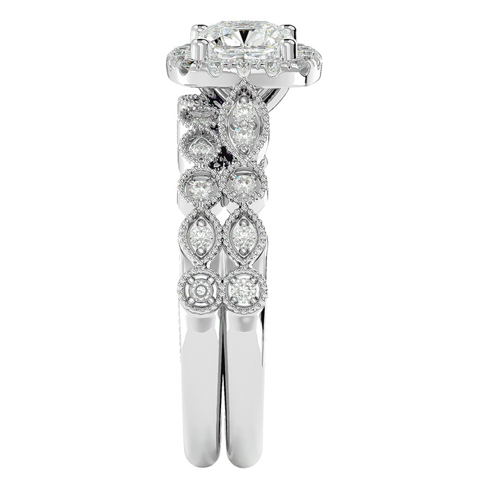 1 1/2 Carat Cushion Cut Moissanite Bridal Set In 14 Karat White Gold
