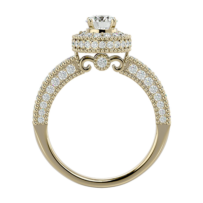 1 1/2 Carat Moissanite Halo Engagement Ring In 14 Karat Yellow Gold