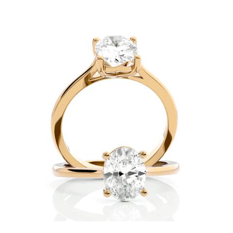1 1/2 Carat Oval Shape Moissanite Solitaire Engagement Ring In 14 Karat Yellow Gold