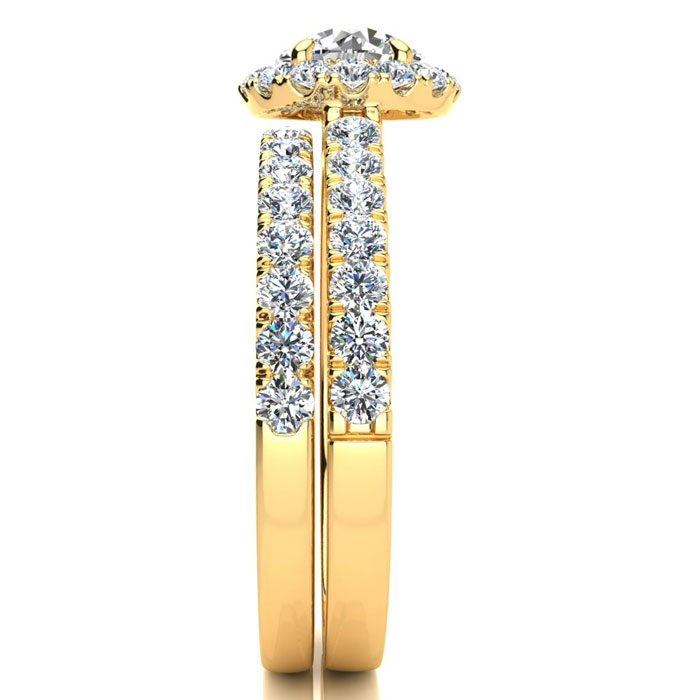 1 1/2 Carat Round Moissanite Halo Bridal Set In 14 Karat Yellow Gold