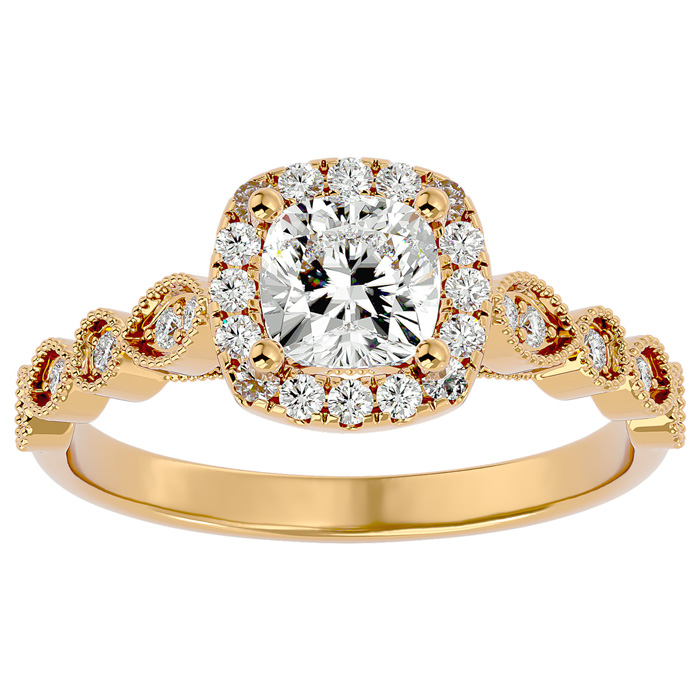 1 1/3 Carat Cushion Cut Moissanite Engagement Ring In 14 Karat Yellow Gold