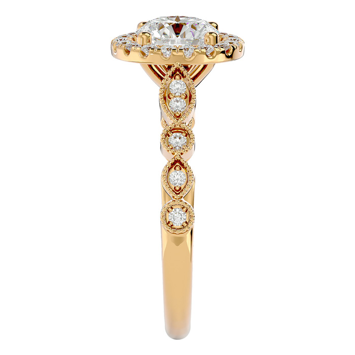 1 1/3 Carat Halo Moissanite Engagement Ring In 14 Karat Yellow Gold