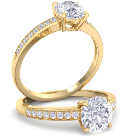 1 1/4 Carat Moissanite Engagement Ring In 14K Yellow Gold
