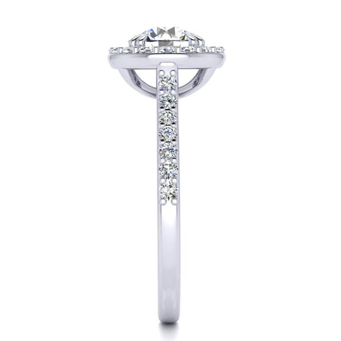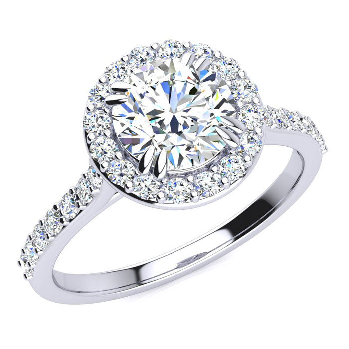 1 1/4 Carat Round Shape Halo Moissanite Engagement Ring In 14 Karat White Gold