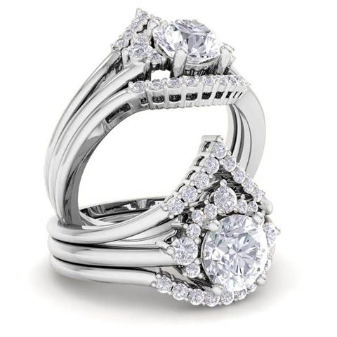 1 1/5 Carat Moissanite Bridal Set With Crown In 14 Karat White Gold