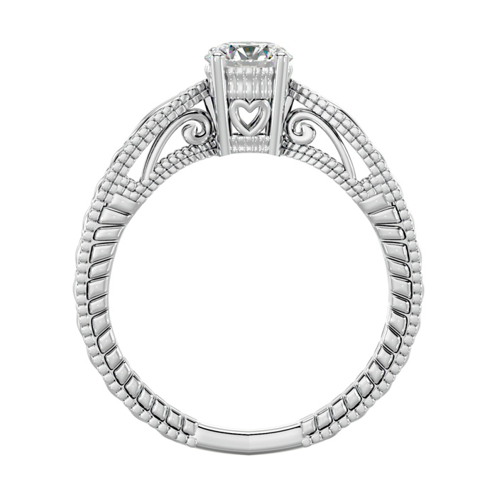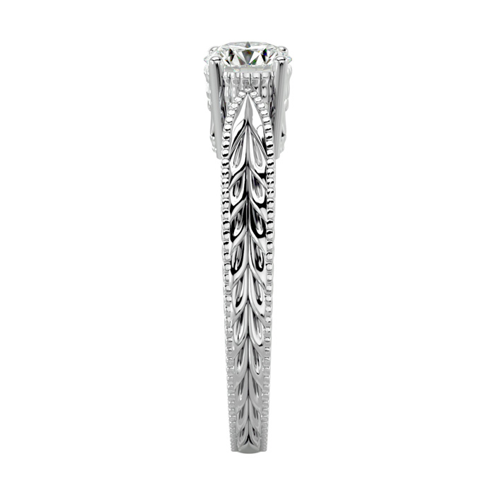 1/2 Carat Moissanite Solitaire Engagement Ring with Tapered Etched Band In 14 Karat White Gold