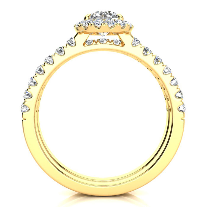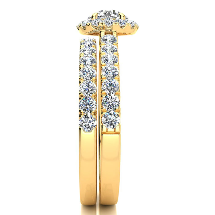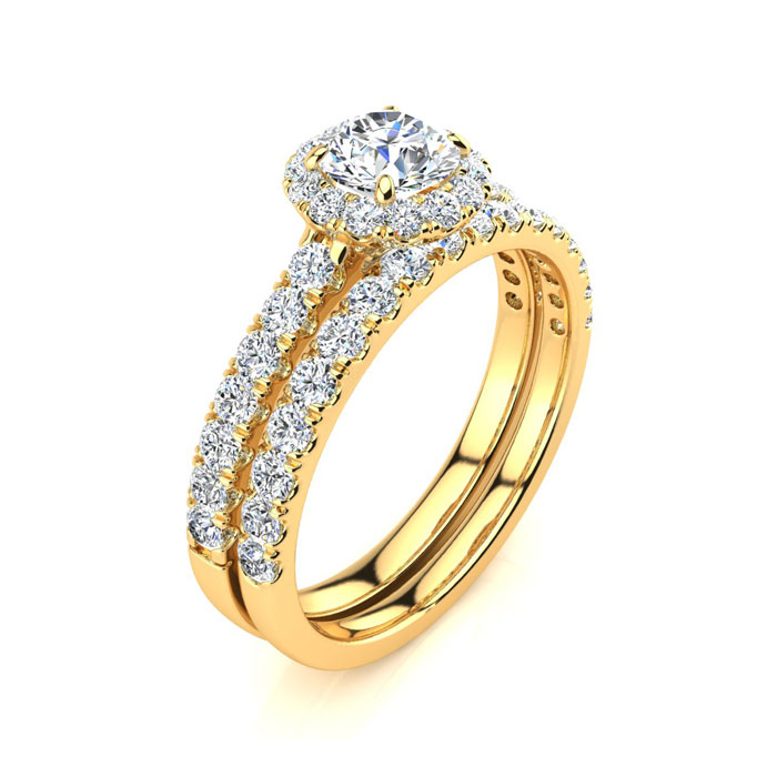 1/2 Carat Round Moissanite Halo Bridal Set In 14 Karat Yellow Gold