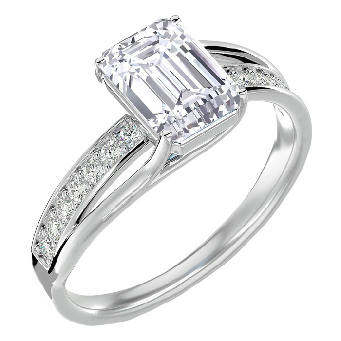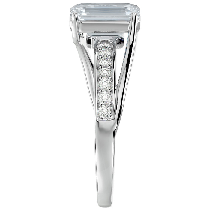 1 3/4 Carat Emerald Shape Moissanite and Diamond Ring In Sterling Silver