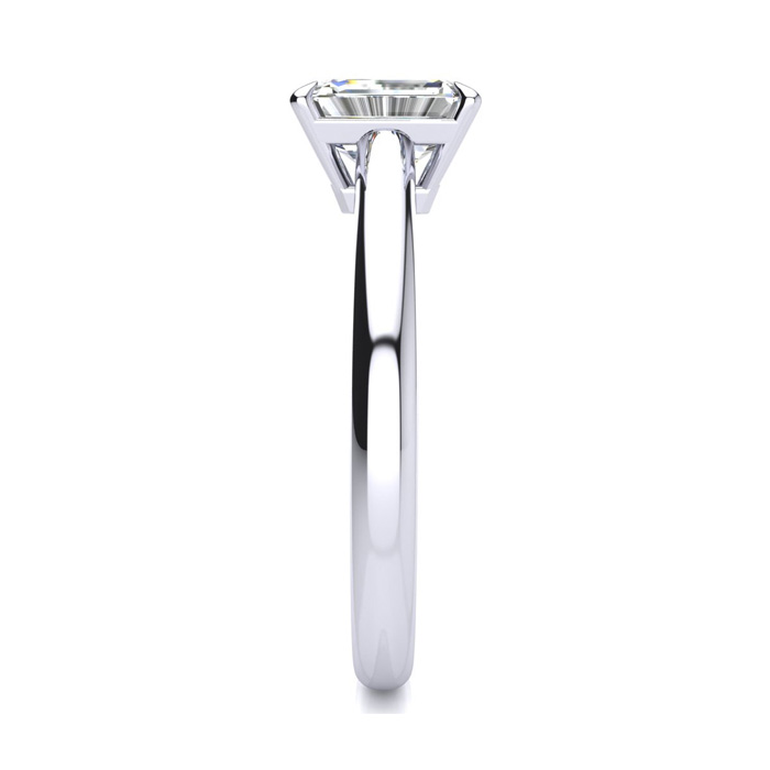 1 Carat Emerald Shape Moissanite Solitaire Engagement Ring In 14 Karat White Gold
