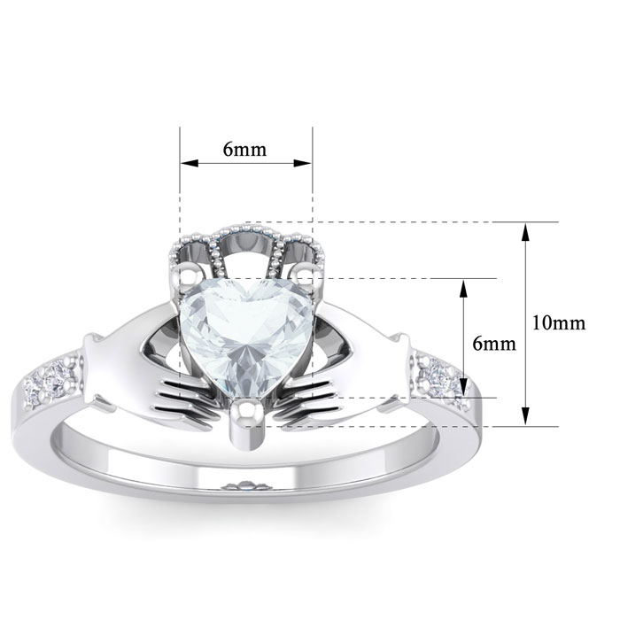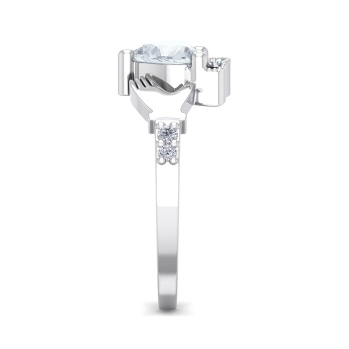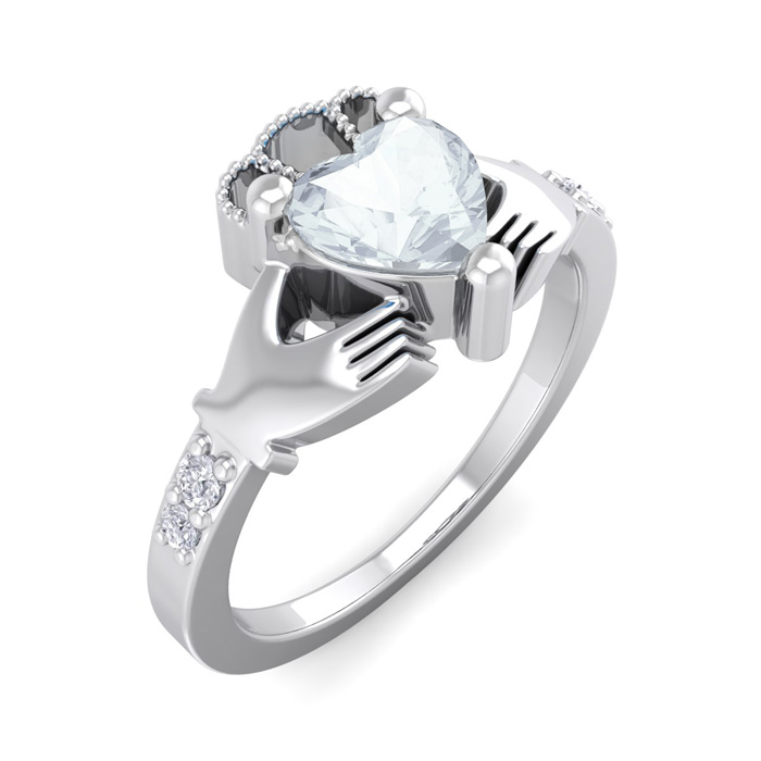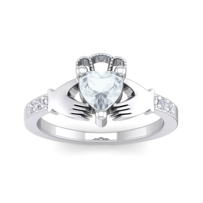1 Carat Heart Shape Moissanite and Diamond Claddagh Ring In Sterling Silver