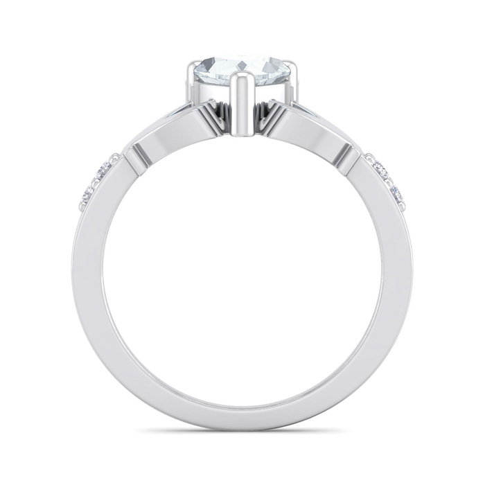 This moissanite ring features one 6x6mm heart shape moissanite gemstone in E-F color, VVS1-VVS2 clarity. It is surrounded by 4 sparkling diamonds totaling 0.06 carats in I-J color, I1-I2 clarity. Total carat weight is approximately 1.06 carats. This ring is in sterling silver.