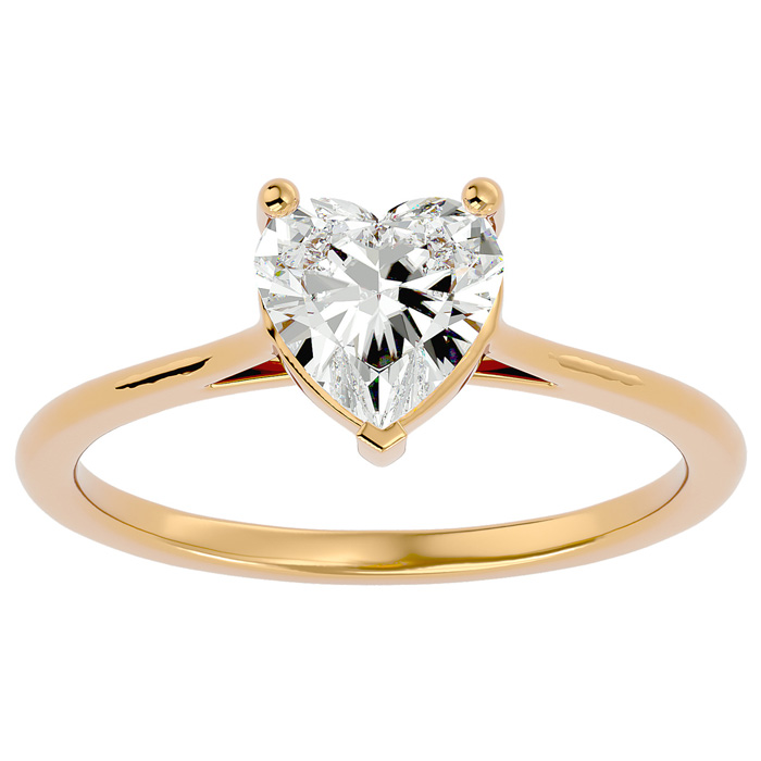 1 Carat Heart Shape Moissanite Solitaire Engagement Ring In 14 Karat Yellow Gold