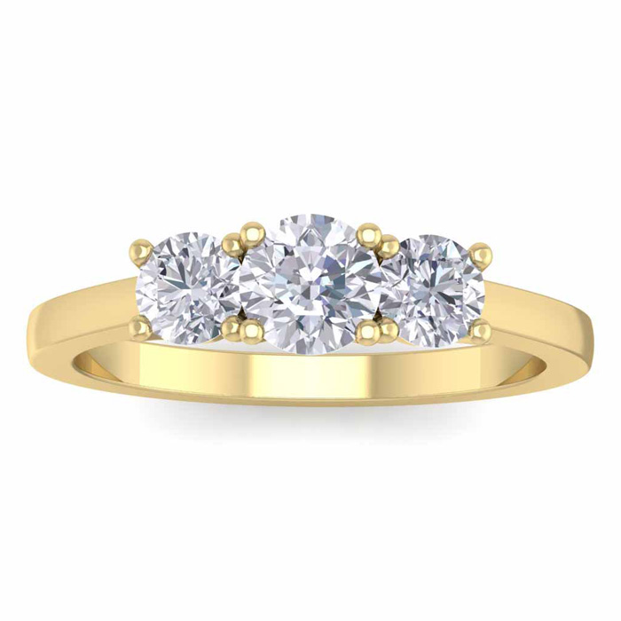 1 Carat Moissanite Three Stone Ring In 14 Karat Yellow Gold
