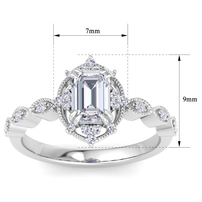 1 Carat Octagon Shape Moissanite Engagement Ring In 14K White Gold