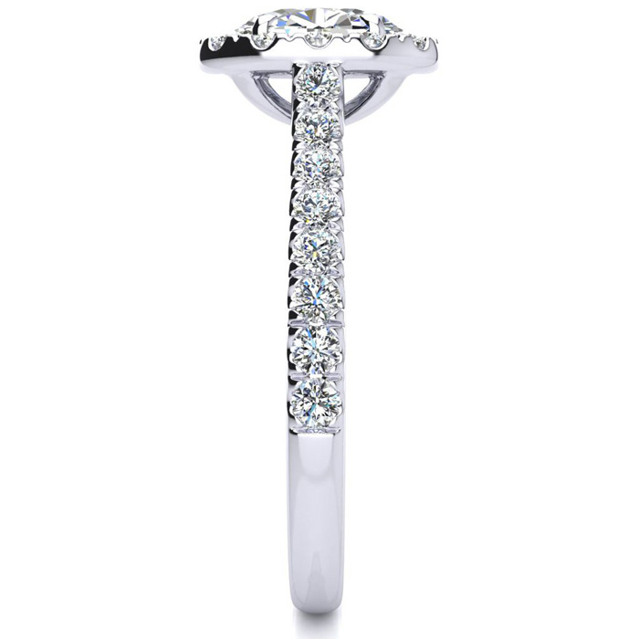 1 Carat Oval Shape Halo Moissanite Engagement Ring in 14 Karat White Gold
