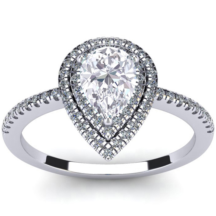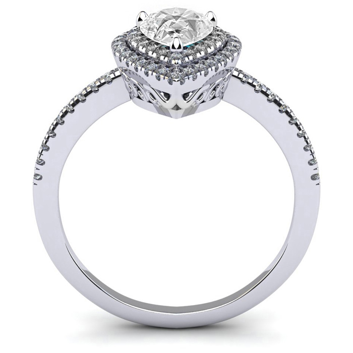 1 Carat Pear Shape Moissanite and Diamond Double Halo Ring In Sterling Silver