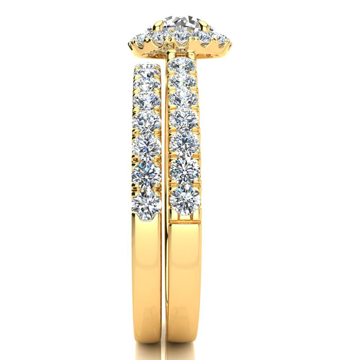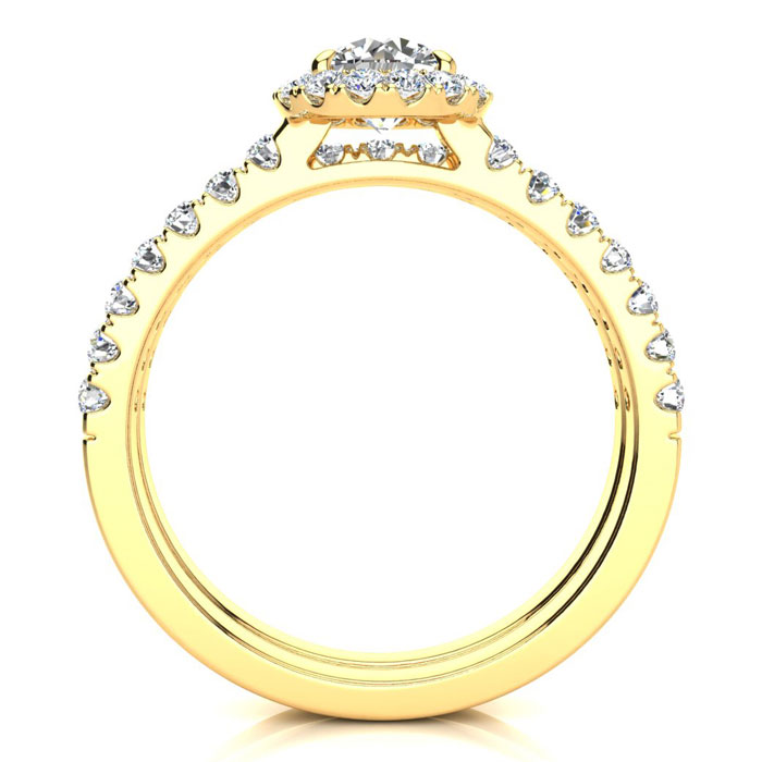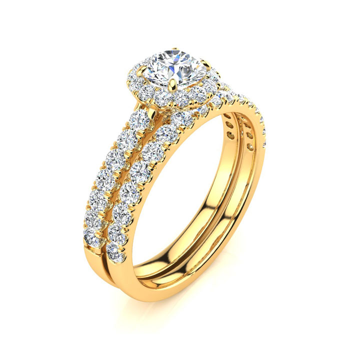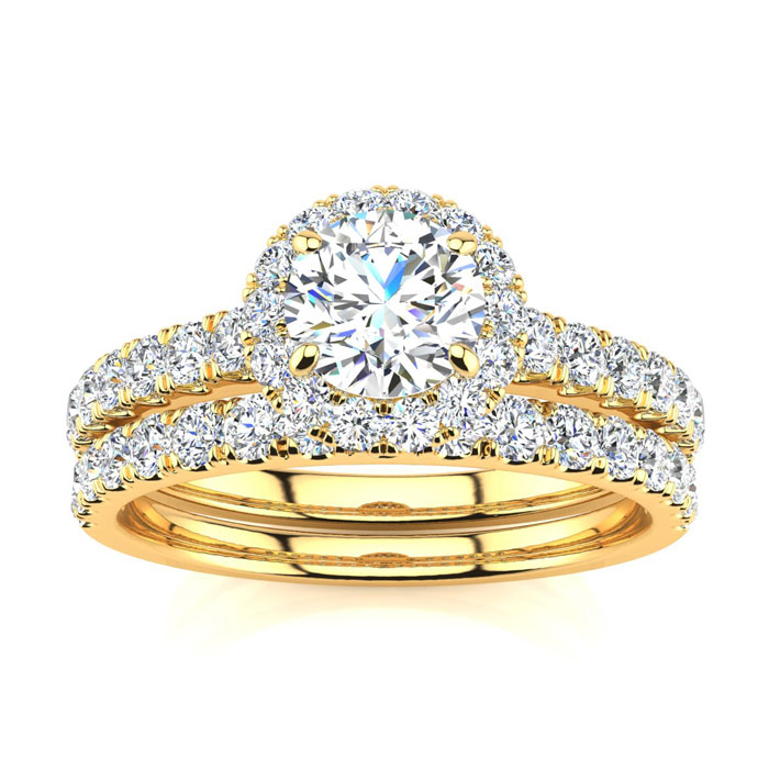 1 Carat Round Moissanite Halo Bridal Set In 14 Karat Yellow Gold