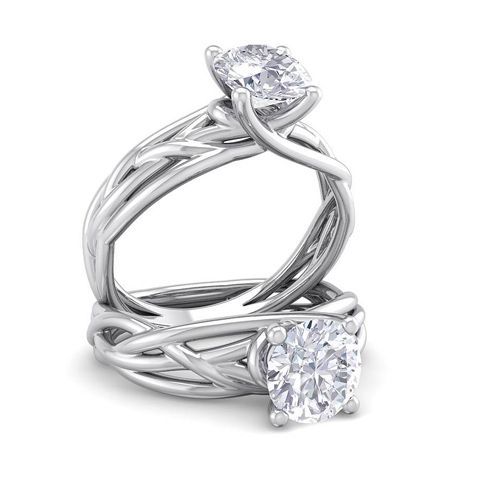 1 Carat Round Moissanite Solitaire Intricate Vine Engagement Ring In 14 Karat White Gold