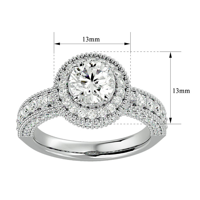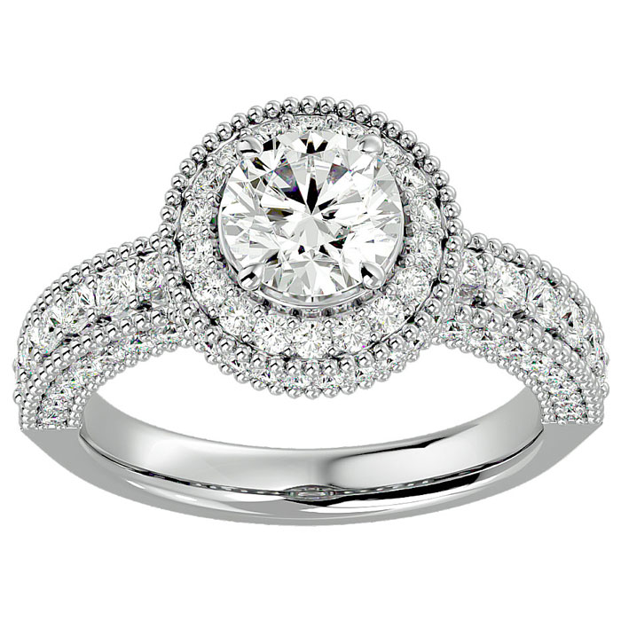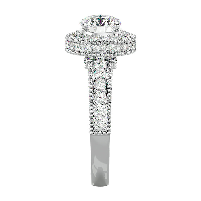 2 1/2 Carat Moissanite Halo Engagement Ring In 14 Karat White Gold