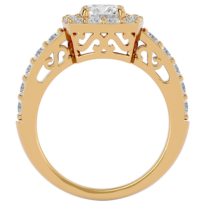 2 1/2 Carat Moissanite Halo Engagement Ring In 14 Karat Yellow Gold