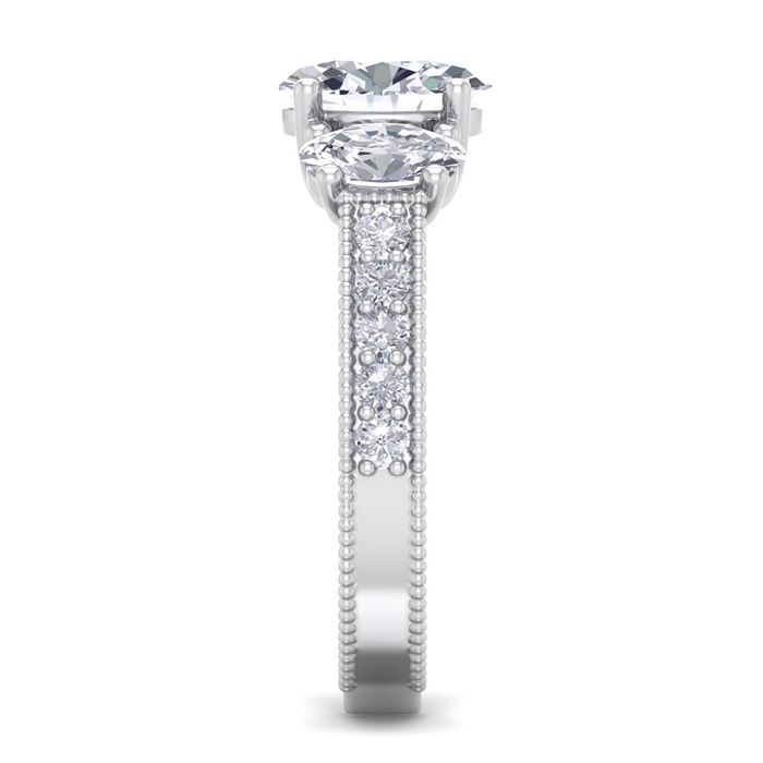2 1/2 Carat Moissanite Oval Shape Three Stone Ring In 14 Karat White Gold