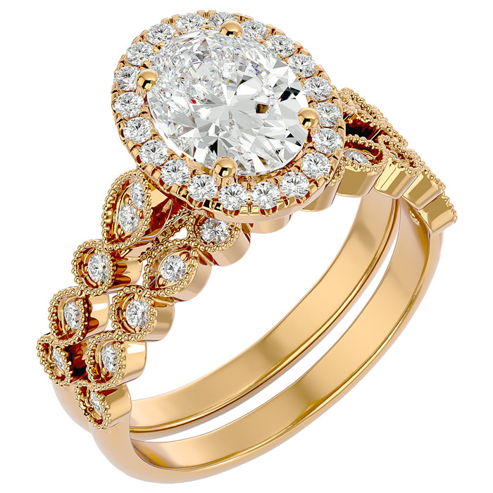 2 1/2 Carat Oval Shape Moissanite Bridal Set In 14 Karat Yellow Gold