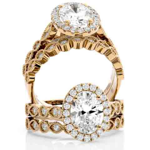 2 1/2 Carat Oval Shape Moissanite Bridal Set In 14 Karat Yellow Gold