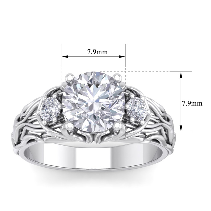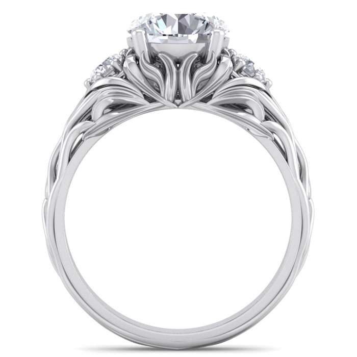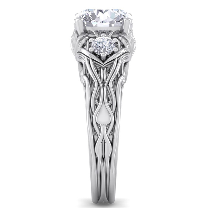 2 1/4 Carat Round Shape Moissanite Intricate Vine Engagement Ring In 14 Karat White Gold