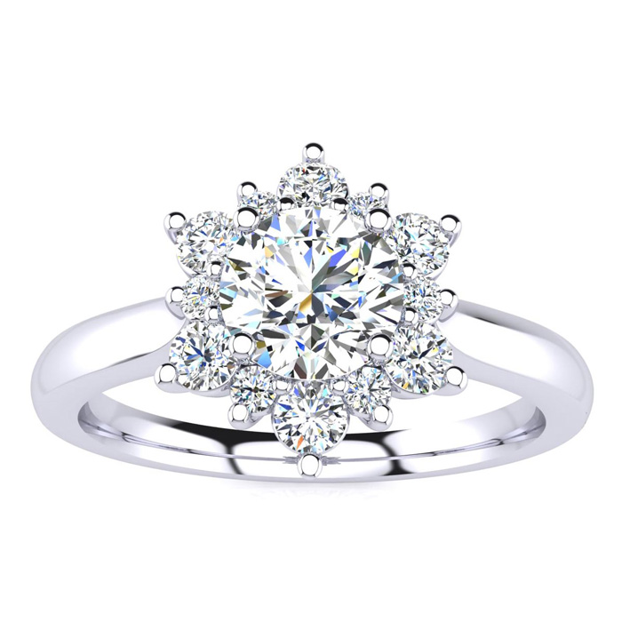 2 3/4 Carat Round Shape Flower Halo Moissanite Engagement Ring In 14 Karat White Gold