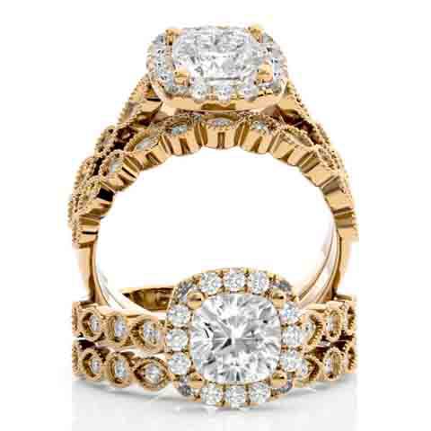 2 Carat Cushion Cut Moissanite Bridal Set In 14 Karat Yellow Gold